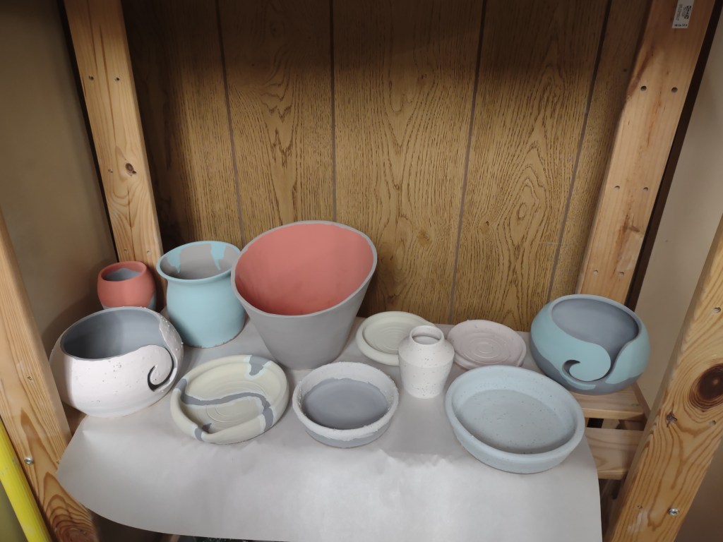 Come check out what we are up to! Hook Vase Hook Vase / Cup Hook Vase / Cup Hook Vase / Cup Garlic Grater Brown and Blue Garlic Grater Sage, Black, and Blue Garlic Grater Sage Sm Vase Cream & Green Bowl Bowl Yarn Bowl Sold! Behind the Scenes Photos Large Charcuterie Board Teal & Black